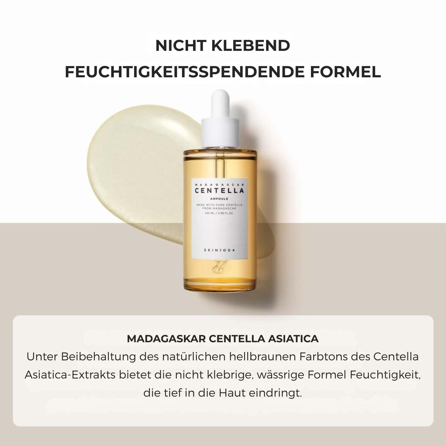 Die SKIN1004 Madagascar Centella Ampoule in der großzügigen 100ml Variante ist ein hochkonzentriertes Gesichtsserum, das ausschließlich aus Centella Asiatica besteht. Dieses Serum stammt aus wild gesammeltem Centella Asiatica Extract from Madagascar und bietet eine intensive hautberuhigende und feuchtigkeitsspendende Wirkung – ideal für empfindliche Haut und Mischhaut.